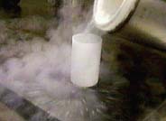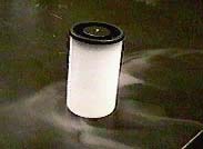 A cold explosion can be produced by placing liquid nitrogen in a film can. Though caution is advised, it seems like harmless fun. The Fuji type film can shown builds up more pressure than the black Kodak can, though both are interesting. The top of the film can hits the ceiling forcefully. |