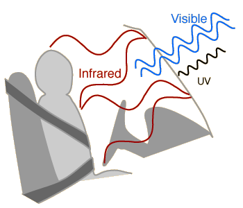 Greenhouse Effect ExampleBright sunlight will effectively warm your car on a cold, clear day by the greenhouse effect. The longer infrared wavelengths radiated by sun-warmed objects do not pass readily through the glass. The entrapment of this energy warms the interior of the vehicle. The trapping of the hot air so that it cannot rise and lose the energy by convection also plays a major role.