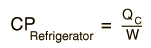 For a refrigerator, however, the useful quantity is the heat extracted, QC , not the heat exhausted. Therefore, the coefficient of performance of a refrigerator is expressed as