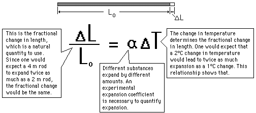 Linear ExpansionThe relationship governing the linear expansion of a long thin rod can be reasoned out as follows: ![]()
