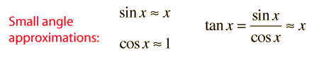 Applications of Trig SeriesOne of the most important applications of trigonometric series is for situations involving very small angles. For such angles, the trigonmetric functions can be approximated by the first term in their series. This gives the useful small angle approximations: ![]() Examples of the use of the small angle approximation are in the calculation of the period of a simple pendulum, and the calculation of the intensity minima in single slit diffraction. This approximation is used in most of the common expressions of geometrical optics which are built on the concept of surface power for lenses. This approximation sin x = x reaches a 1% error at about 14 degrees. |