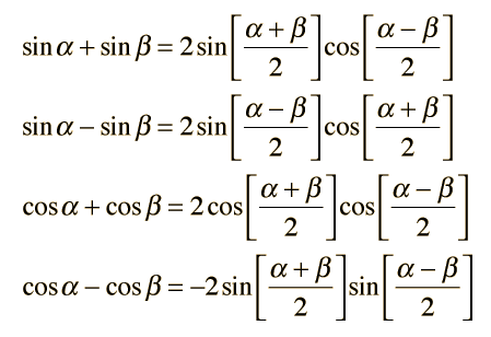 These relationships express the product of two sinusoids in terms of the sum of two sinusoids. Sometimes it is desirable to express the sum of two sinusoids in terms of a product of sinusoids, as in the description of modulated sine waves. These relationships are called the superposition relationships.