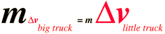 Truck Collision![]() In a head-on collision the forces on the two vehicles are constrained to be the same by Newton's third law. But from both Newton's second law and the work-energy principle it becomes evident that it is safer to be in the bigger truck.