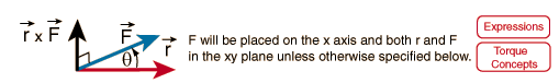 Torque as a Vector ProductThe torque produced by a force takes the form of a vector product. You may enter values in any of the boxes below. Then click on the symbol for either the vector product or the angle.