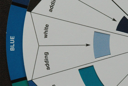 One of the features of the commercially available Color Wheel is to help visualize the effect of adding white paint or pigment. It makes the color less saturated as shown in the image below. ![]() |