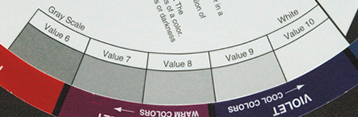 ![]() ![]() The images above from the commercially available Color Wheel depict 10 levels of brightness for gray or achromatic light. |
