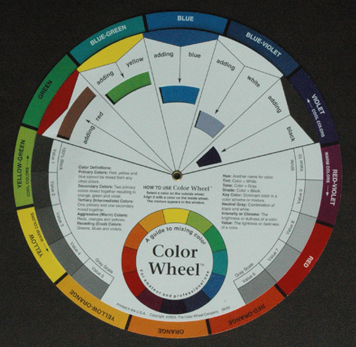 Color WheelBelow is a photograph of a color wheel marketed by The Color Wheel Company, Philomath, Oregon, www.colorwheelco.com . It is a useful tool for paint and pigment mixing. It includes features from both the Munsell and Ostwald color systems and uses the color characteristics hue, saturation and brightness. It also has some of the characteristics of the Newton Color Circle. ![]() Below is a picture of the opposite side of the wheel. It gives further guidance about strategies for mixing paint colors. ![]() The MUNSELL system is a collection of color samples for comparison, with adjacent samples based upon equal perceived differences in color.