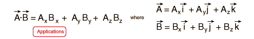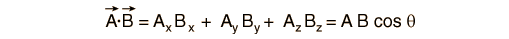 If the vectors are expressed in terms of unit vectors i, j, and k along the x, y, and z directions, the scalar product can also be expressed in the form: