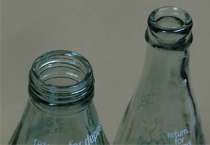 It is reasonable to expect that the cavity resonance frequency of the larger bottle would be lower. But in this case that is not so. The larger volume does act to lower the frequency, but the other variables that influence the cavity resonant frequency are the area of the opening and the effective length of the opening port. In this case the larger glass bottle has a cavity resonance frequency of 159 Hz compared to 148 Hz for the smaller bottle.
