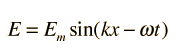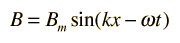 Electromagnetic Wave EquationThe wave equation for a plane electric wave traveling in the x direction in space is ![]() with the same form applying to the magnetic field wave in a plane perpendicular the electric field. Both the electric field and the magnetic field are perpendicular to the direction of travel x. The symbol c represents the speed of light or other electromagnetic waves. The wave equation for electromagnetic waves arises from Maxwell's equations. The form of a plane wave solution for the electric field is ![]() and that for the magnetic field ![]() To be consistent with Maxwell's equations, these solutions must be related by ![]() The magnetic field B is perpendicular to the electric field E in the orientation where the vector product E x B is in the direction of the propagation of the wave.