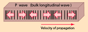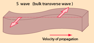Seismic WavesSince the Earth or any other planetary body can be considered to be an elastic object, it will support the propagation of traveling waves. A disturbance like an earthquake at any point on the Earth will produce energetic waves called seismic waves. The Earth's crust as a solid object will support waves through the crust called body waves and on the surface (surface waves). In a solid material these waves can be either longitudinal waves or transverse waves. For seismic waves through the bulk material the longitudinal or compressional waves are called P waves (for "primary" waves) whereas the transverse waves are callled S waves ("secondary" waves). Since any material, solid or liquid (fluid) is subject to compression, the P waves can travel through any kind of material. However, S waves depend upon a resistance to transverse or "shear" force which does not exist in a liquid or gas medium, so they can only travel in the solid parts of the Earth (see geologic example). ![]() ![]() P waves in air are simply sound waves and the speed of sound is around 340 m/s for ordinary temperatures. Water can support P waves but not S waves, and the speed of these P waves (speed of sound) in water is about 1450 m/s. P waves depend upon the bulk modulus of elasticity for the material as well as its density, and the wave speed in a solid material like granite can be about 5000 m/s. The P waves from an earthquake arrive first, but because of their small amplitudes don't do as much damage as the S waves and surface waves which follow. S waves are transverse waves which involve movement of the ground perpendicular to the velocity of propagation. They travel only through solids, and the absence of detected S waves at large distances from earthquakes was the first indication that the Earth has a liquid core. S waves travel typically 60% of the speed of P waves. They are typically more damaging than the P waves because they are several times higher in amplitude. Earthquakes also produce surface waves which may cause motion perpendicular to the surface or parallel to the surface. The waves which move the surface up and down are called Rayleigh waves and are sometimes described as "ground roll". Waves whose amplitude of moton is parallel to the surface are called Love waves (named after the mathematician A. E. H. Love who modeled them - definitely not an indication that anyone is fond of them). Rayleigh waves or ground roll waves cause the surface of the ground to move up and down. They travel at roughly 90% of the speed of the S waves. Love waves involve the motion of the ground side-to-side, perpendicular to the propagation velocity. They usually travel slightly faster than the Rayleigh waves. References: |
