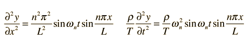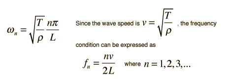 String Standing WavesFor an ideal string of length L which is fixed at both ends, the solutions to the wave equation can take the form of standing waves: ![]() This kind of solution can be verified by direct substitution into the wave equation: ![]() Substituting: ![]() These two expressions are equal for all values of x and t provided ![]()