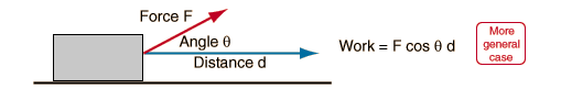 For the special case of a constant force, the work may be calculated by multiplying the distance times the component of force which acts in the direction of motion. |