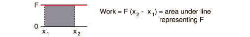 WorkFor a constant force F which moves an object in a straight line from x1 to x2 , the work done by the force can be visualized as the area enclosed under the force line below