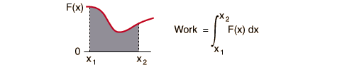 For the more general case of a variable force F(x) which is a function of x, the work is still the area under the force curve, and the work expression becomes an integral.